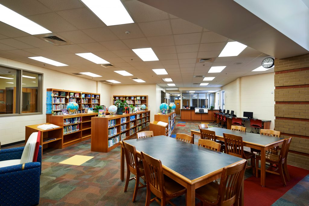 media center and administrative offices are included in the design, as well as an open atrium in the lobby